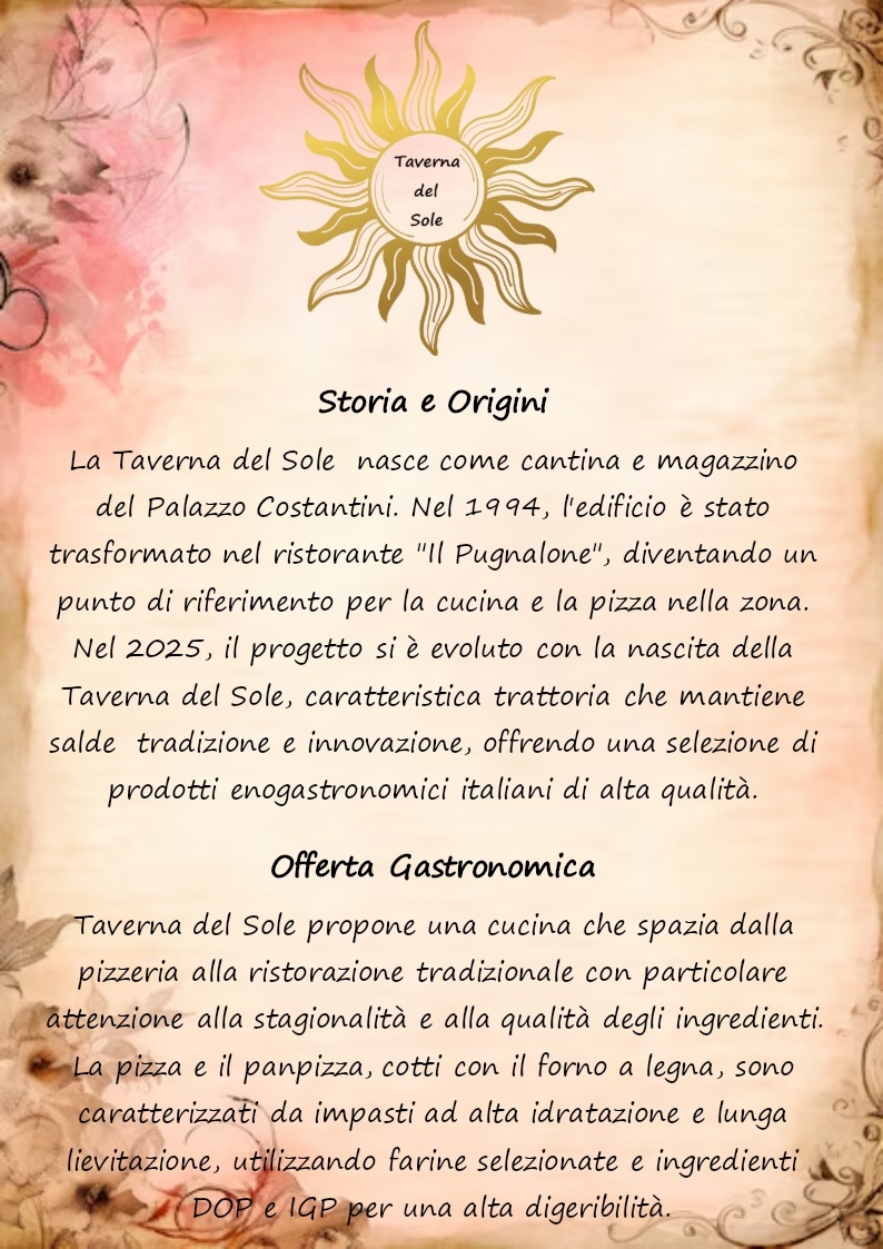 Assaporare un pasto immersi nella Storia e nell'Arte è un privilegio raro, eppure Taverna Del Sole lo rende alla portata di tutti. Quello che ti sorprenderà saranno i sapori, la location e il prezzo!